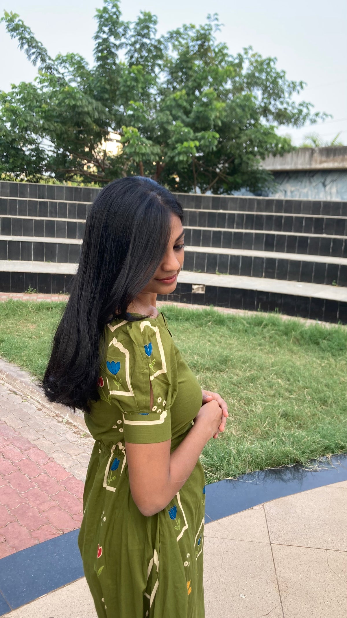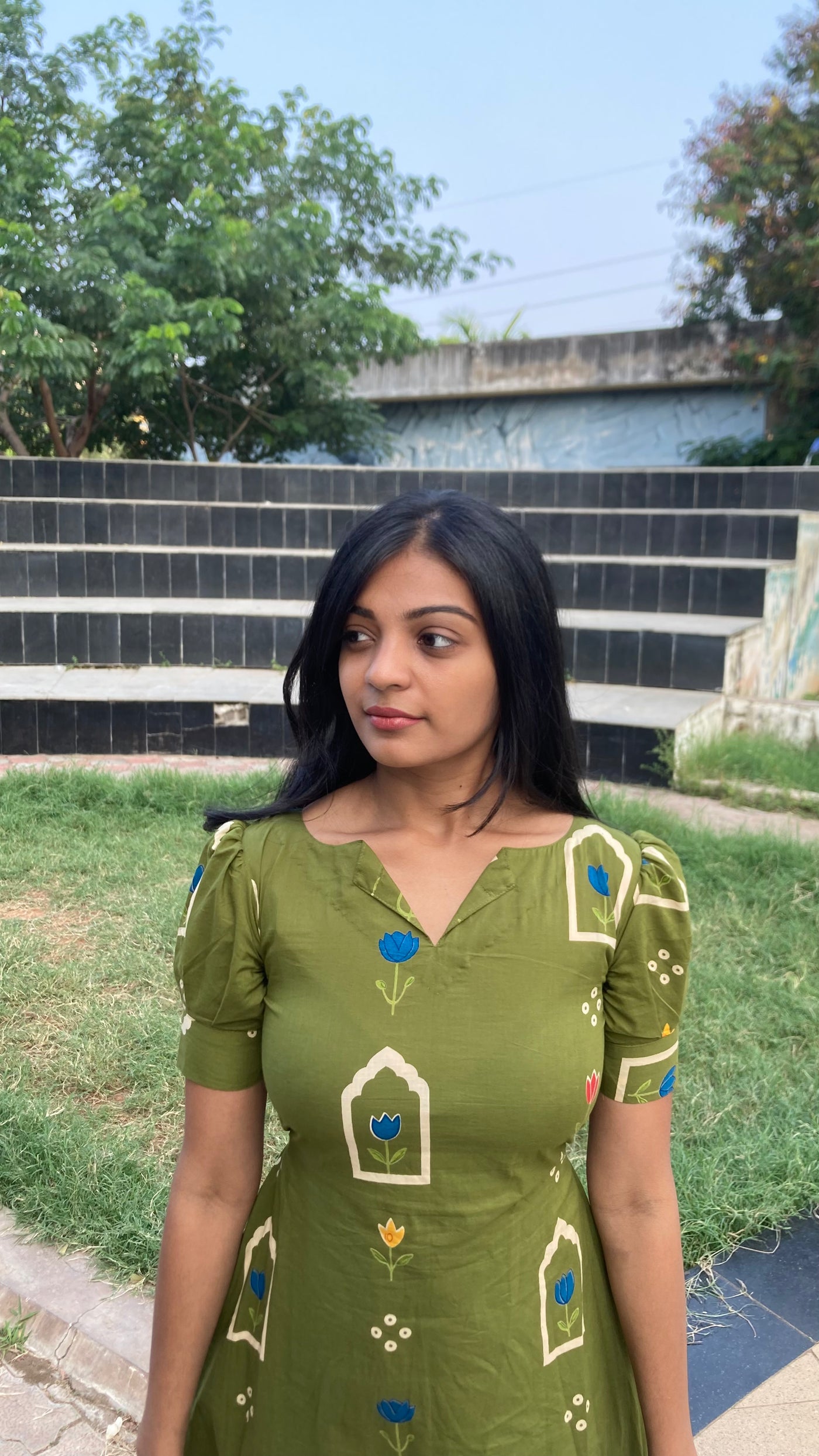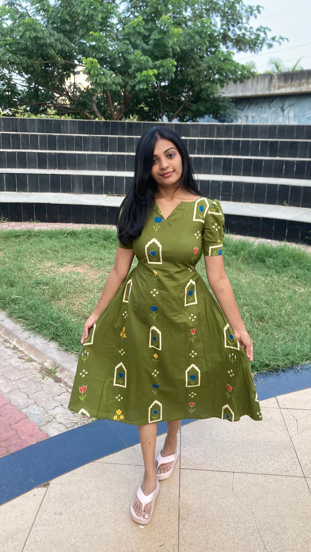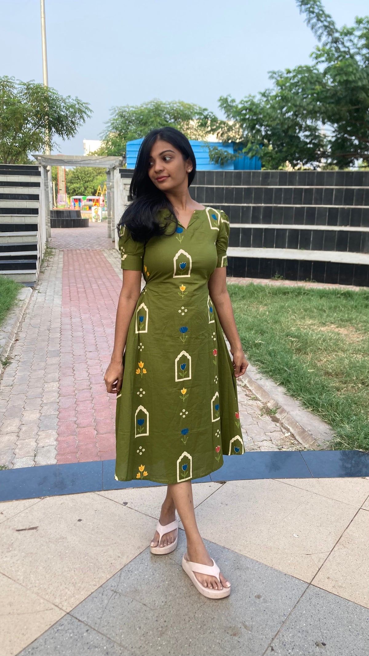 Inform when this item available Aline frock with elastic back - Olive